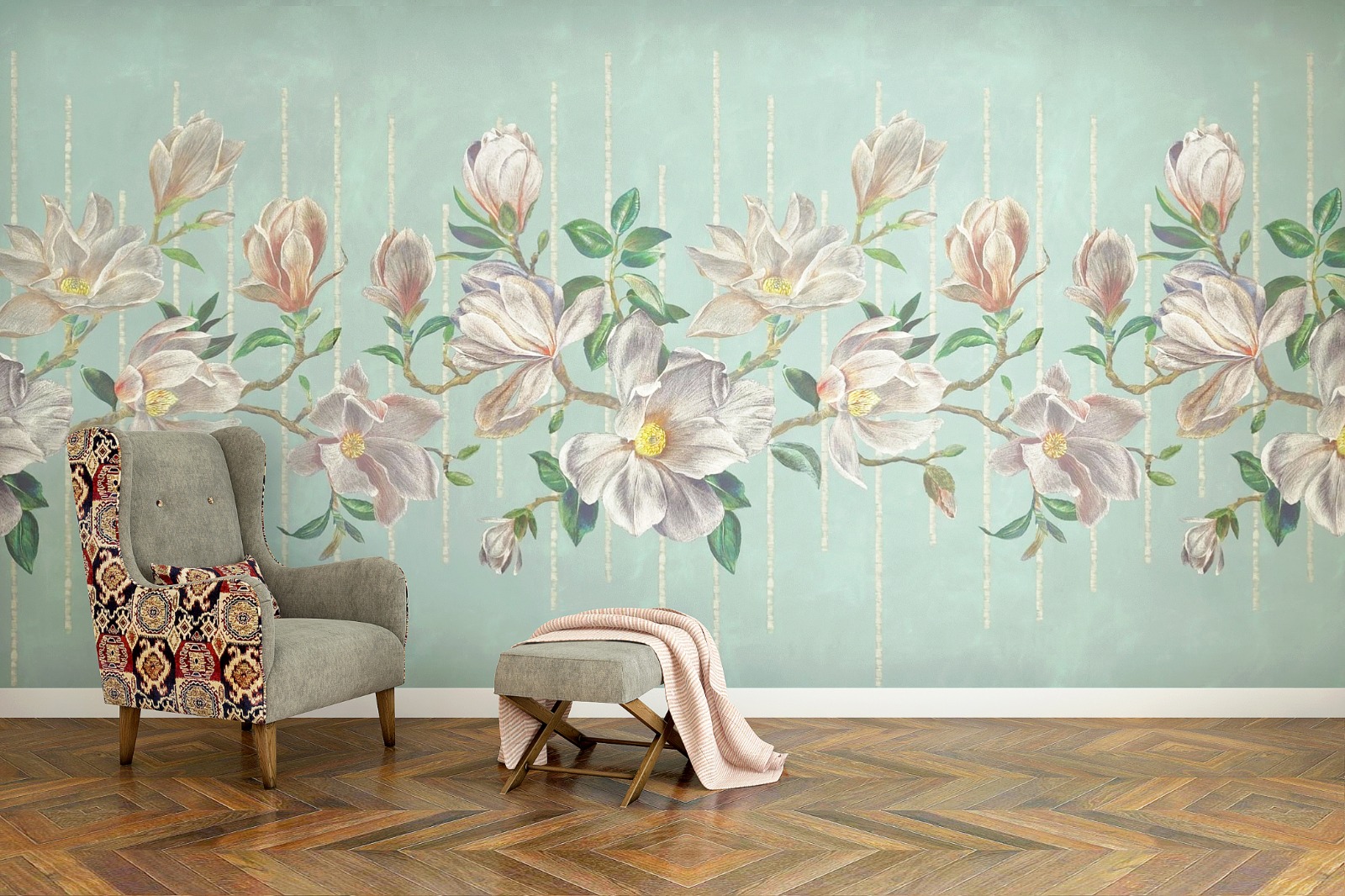 “Whispering Florals” transcends traditional floral patterns, offering a nuanced interpretation that speaks volumes in its quiet splendor. It embodies a harmonious blend of delicate designs and bold expressions, crafting spaces that feel both tranquil and vibrant.